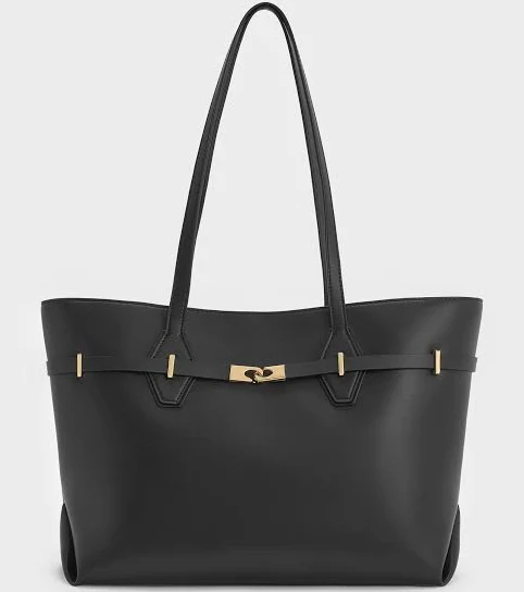 Charles & Keith Arlet Double-Handle Belted Tote Bag