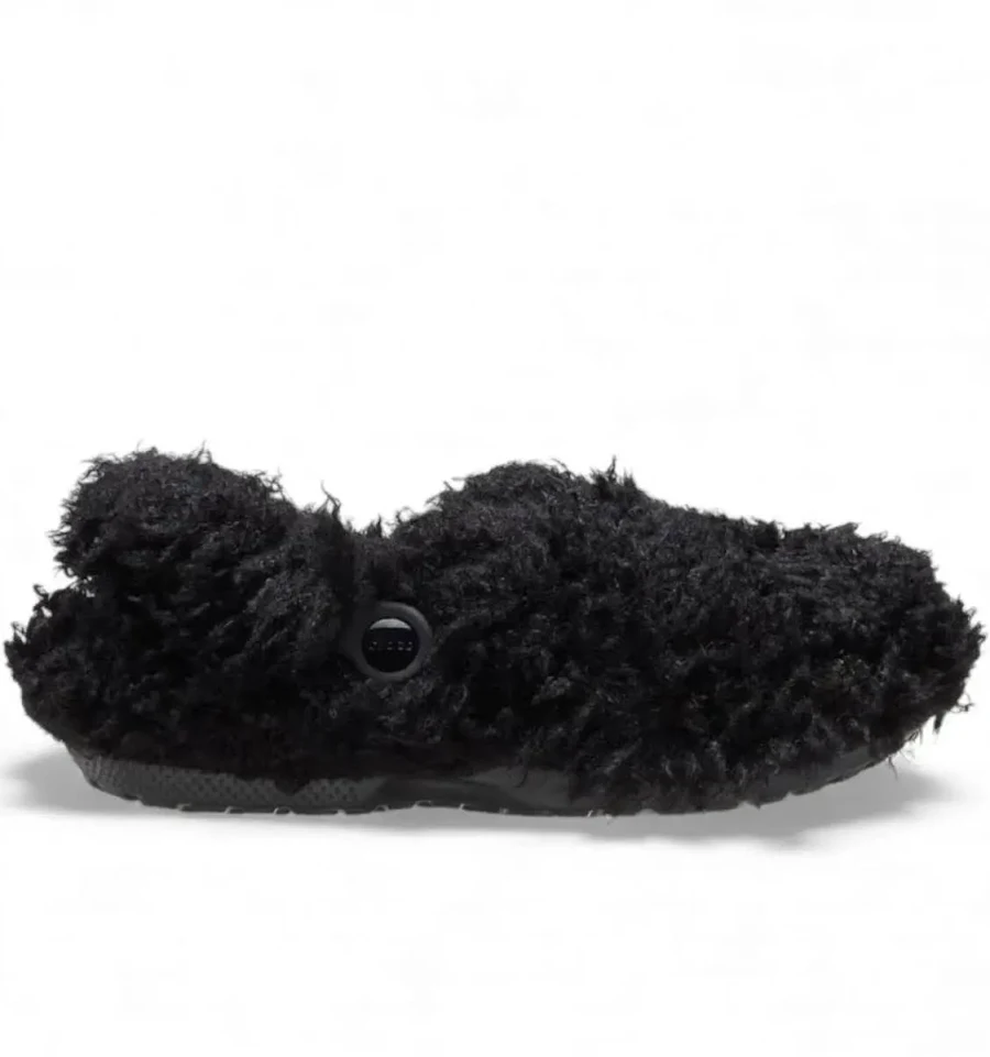 Crocs Classic Shaggy Fur Lined Clog Womens Size 8 Black Teddy Bear