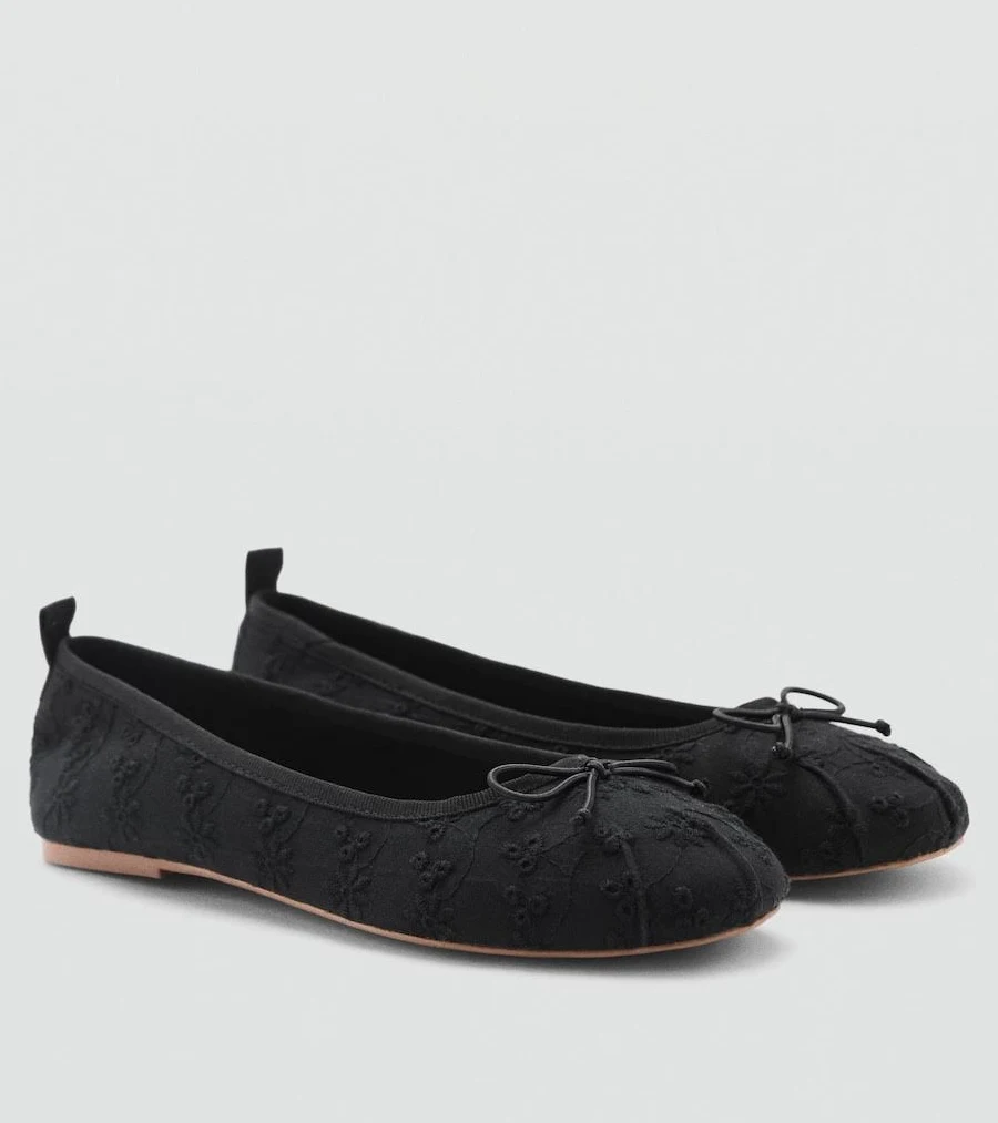 MANGO Kids Embroidered Ballet Flats with Bow